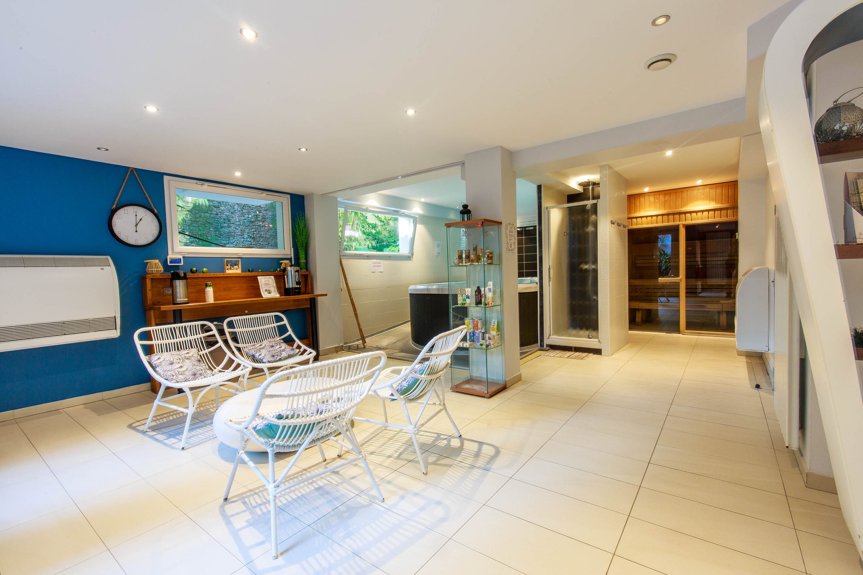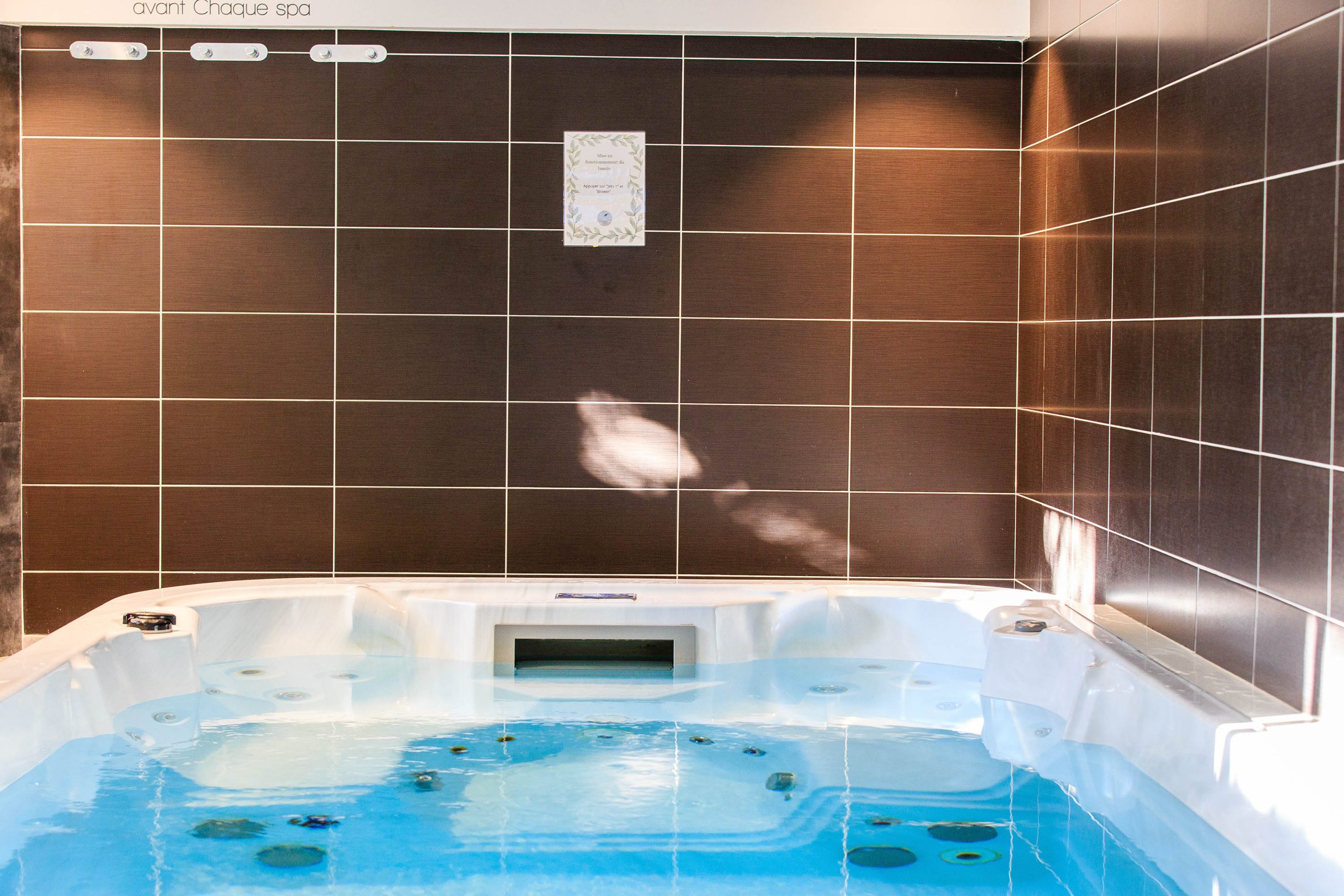 Le spa a été photographié avec une balance des blancs légèrement chaude et des reflets maîtrisés pour restituer une atmosphère apaisante et fidèle ; les vues d’ensemble facilitent la lecture du parcours (zones de repos, points d’eau), tandis que les plans rapprochés (bois, minéraux, textiles) enrichissent l’imaginaire sensoriel.